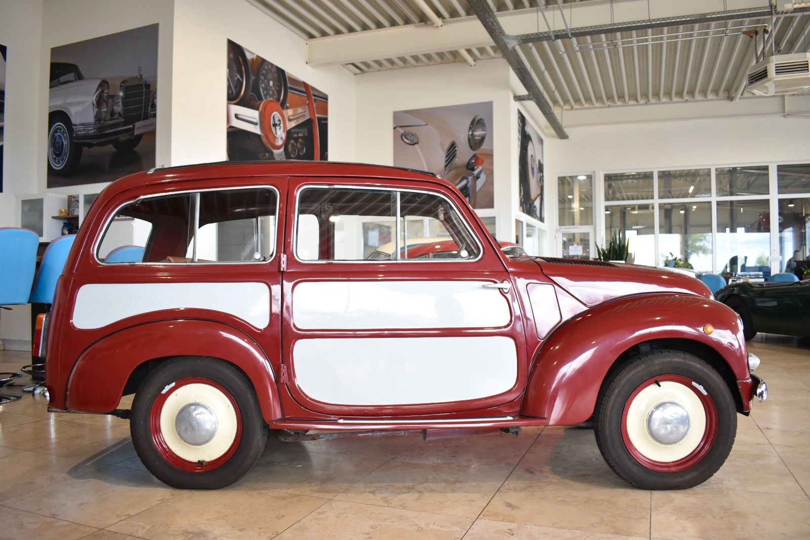 Dieser Urtyp aller Mini-Kombis gibt Ihnen im Sommer das Gefühl, bei geöffnetem Verdeck Cabrio zu fahren. Zeitgleich bietet der kleine Topolino Platz für 4 erwachsene Personen. Genug Platz für Gepäck ist dann auch noch vorhanden.